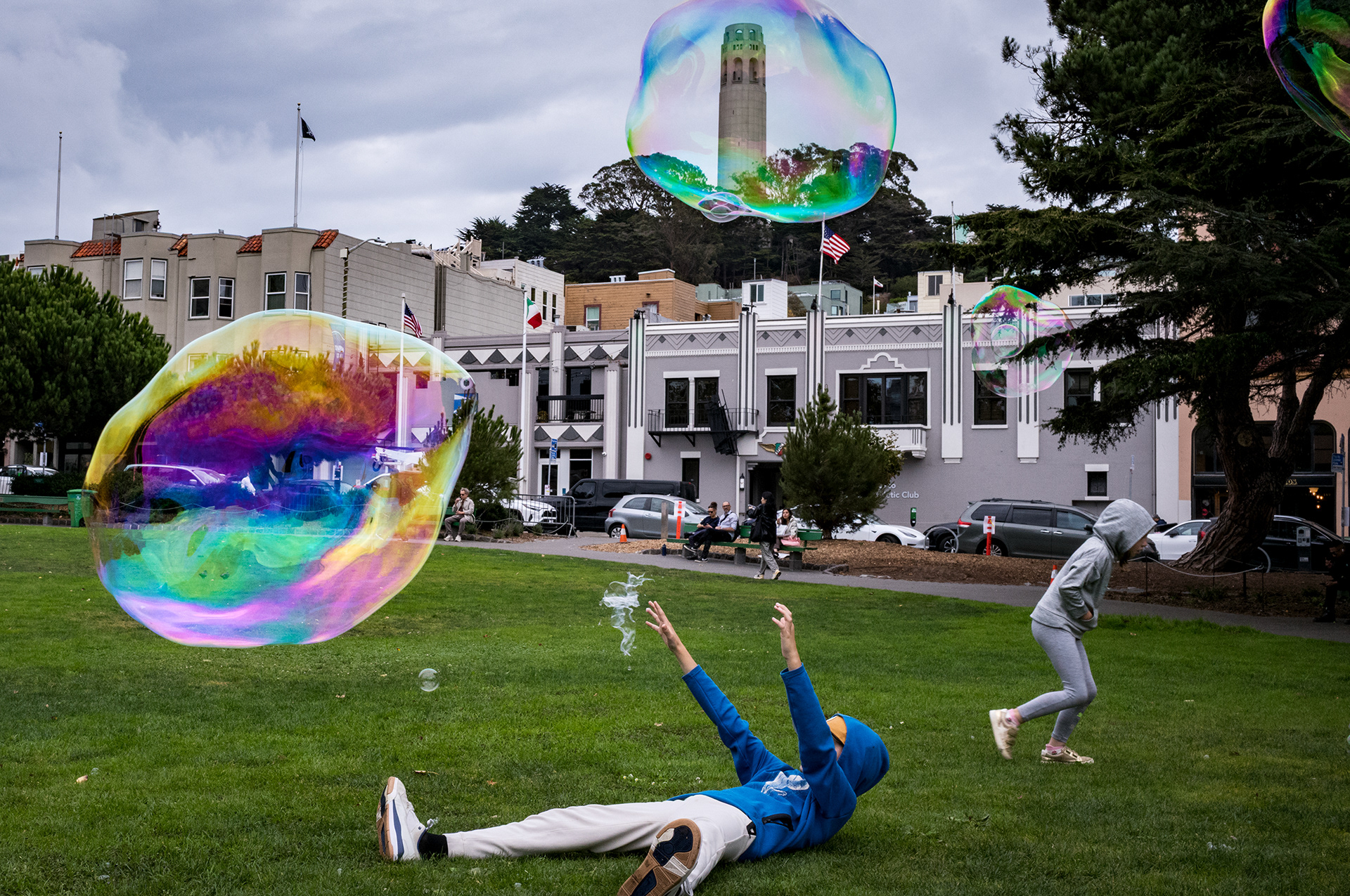 Alongside routine activity, moments of collective expression – parades, festivals, and neighborhood celebrations – appear within the same shared spaces. These gatherings are treated as part of everyday public life rather than spectacle. Through accumulation, repetition, and timing, the photographs describe how the city is used and experienced, presenting San Francisco through lived presence rather than mythology.